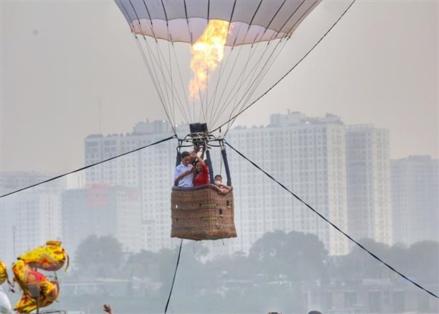 Người dân trải nghiệm bay khinh khí cầu. (Ảnh: Tuấn Đức/TTXVN)