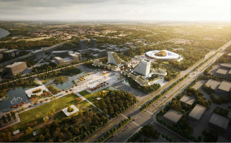 Phối cảnh trung tâm Hành chính - Chính trị mới của thành phố nhìn từ trên cao. Ảnh: GC