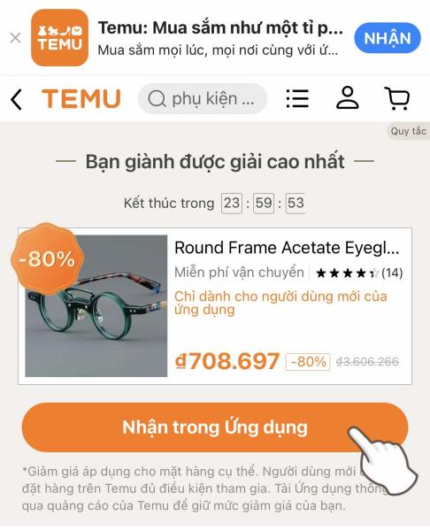 Anh Nguyễn Hải (Nam Từ Liêm, TP Hà Nội) biết đến Temu khi thấy trang này quảng cáo trên mạng xã hội. Khi nhấp vào, anh Hải được trang thương mại điện tử này mời tham gia vòng quay bánh xe thể hiện các mức độ khuyến mãi hàng hóa khác nhau, từ 50% lên đến 80%. Quay vào ô giảm 80% - mức giảm cao nhất, anh Hải được hướng dẫn đến ứng dụng mua sắm trực tuyến của Temu.