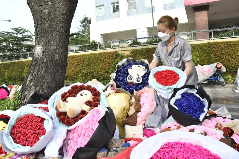 Nhìn thấy gian hàng hoa bài trí đẹp mắt và rất đa dạng, nhưng chia sẻ với người viết, Thảo bộc bạch: “Mặc dù ngày này ai cũng có nhu cầu mua hoa tặng người yêu, nhưng năm nay do ảnh hưởng của dịch bệnh nên mình lo ngại mọi người sẽ không mặn mà với việc chi mua quà tặng, vì thế không dám nhập hàng nhiều. Đợt lễ 20.10 vừa rồi, cũng vì dịch mà hoa bán còn dư lại nhiều nên giờ tận dụng để bán tiếp, may nhờ hoa sáp chứ hoa tươi là bỏ phí hết rồi”.