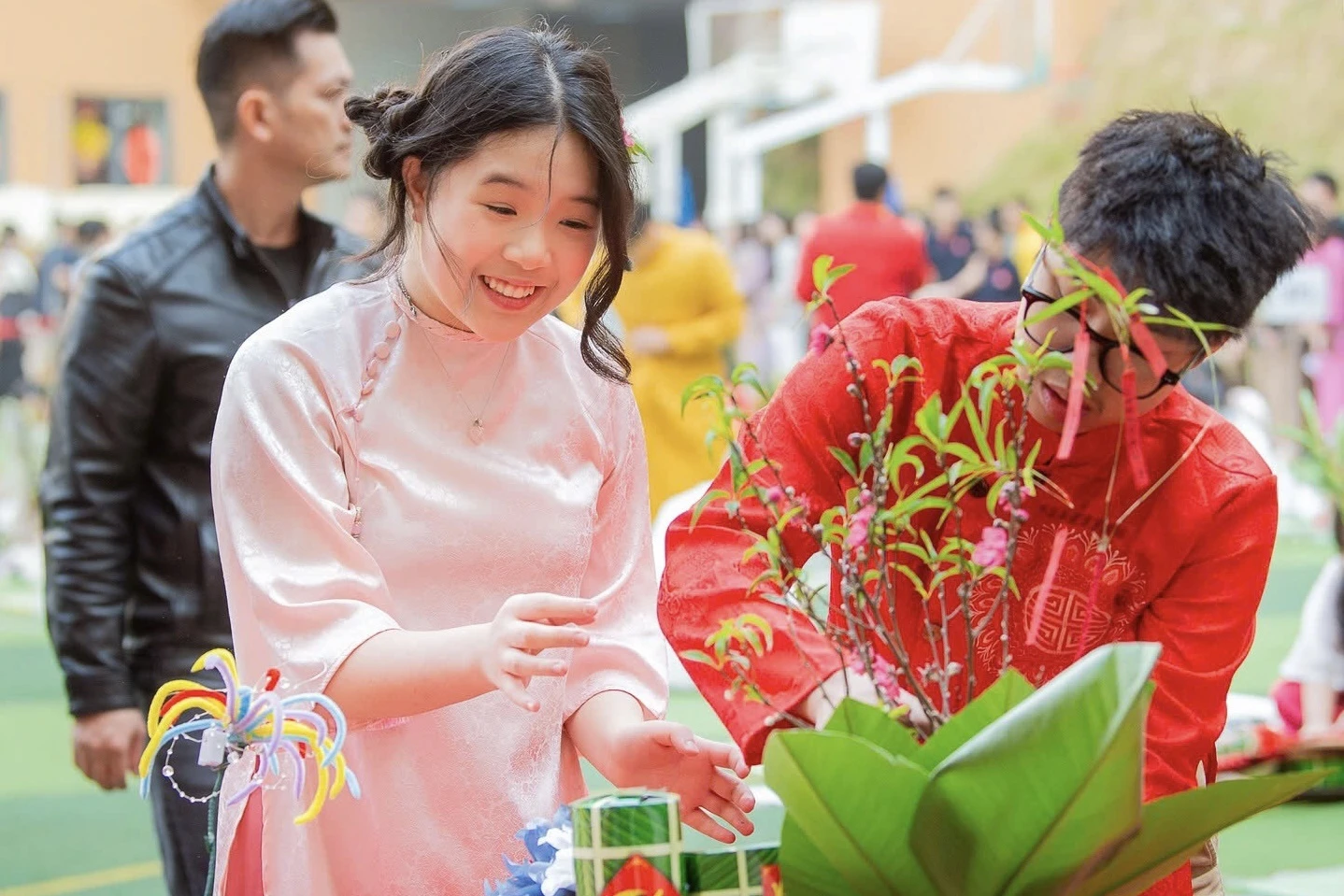 Học sinh trường Marie Curie (Hà Nội) tham gia trải nghiệm Tết tại trường. Ảnh: Marie Curie Hanoi School.