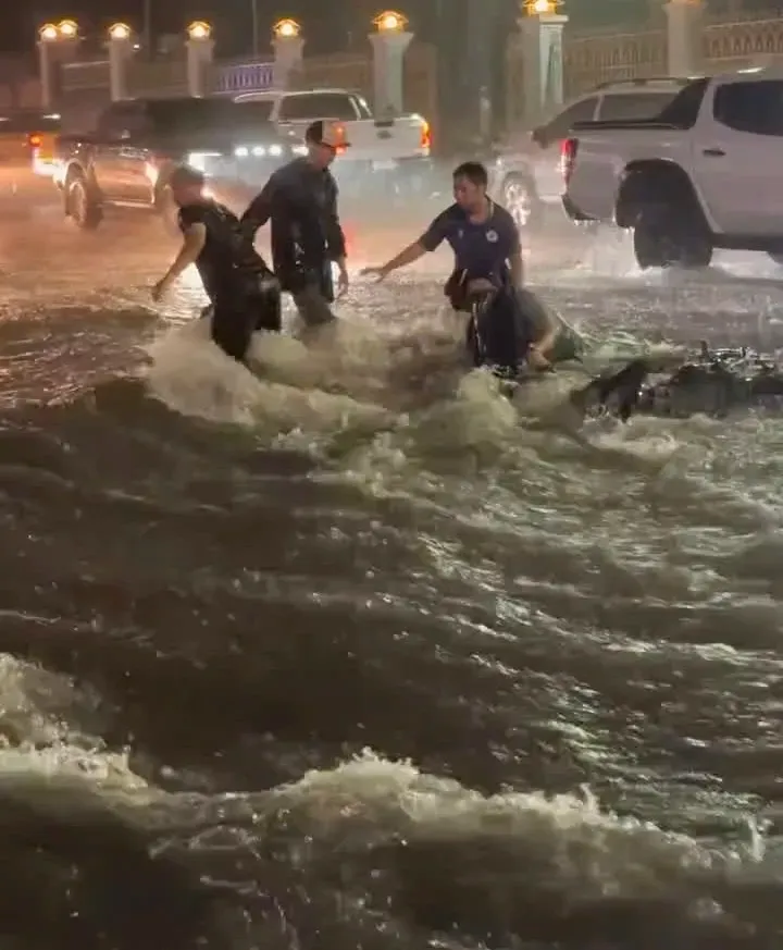 Mưa chảy xiết trôi xe và người đi đường trên quốc lộ 1