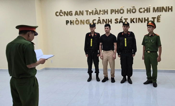 Cơ quan điều tra tống đạt lệnh bắt đối với ca sĩ Lương Bằng Quang - Ảnh: Công an TP.HCM