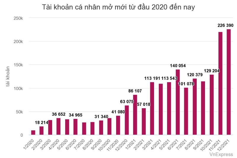Trong báo cáo triển vọng 2022, ông Michael Kokalari nhận định VN-Index năm ngoái tăng mạnh một phần nhờ sự bùng nổ của nhà đầu tư cá nhân trong nước. Đối tượng này mở mới hơn 1,5 triệu tài khoản, gấp rưỡi số tài khoản mở mới của bốn năm trước (2017-2020) cộng lại. Tính đến cuối năm, thị trường có 4,27 triệu tài khoản, trong đó 4,25 triệu là nhà đầu tư cá nhân.