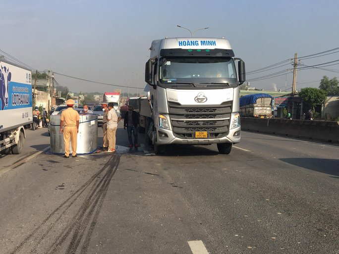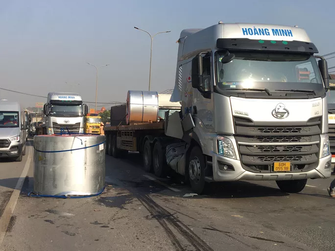 Vào sáng cùng ngày, xe đầu kéo BKS 60H - 055.98 chở theo 2 cuộn thép nặng hàng chục tấn trên Quốc lộ 51 hướng từ TP Biên Hoà đi huyện Long Thành.