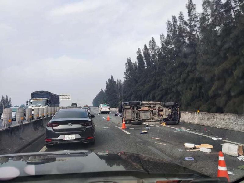 Thời điểm trên, xe biển xanh BS 50A+013.83 do tài xế Nguyễn Quang Vinh đang chạy trên cao tốc Trung Lương hướng về Tiền Giang. Khi đến Km 21 + 700 (huyện Bến Lức), phương tiện này bị nổ lốp sau, tông vào dải phân cách trong làn dừng khẩn cấp rồi lật nhào.