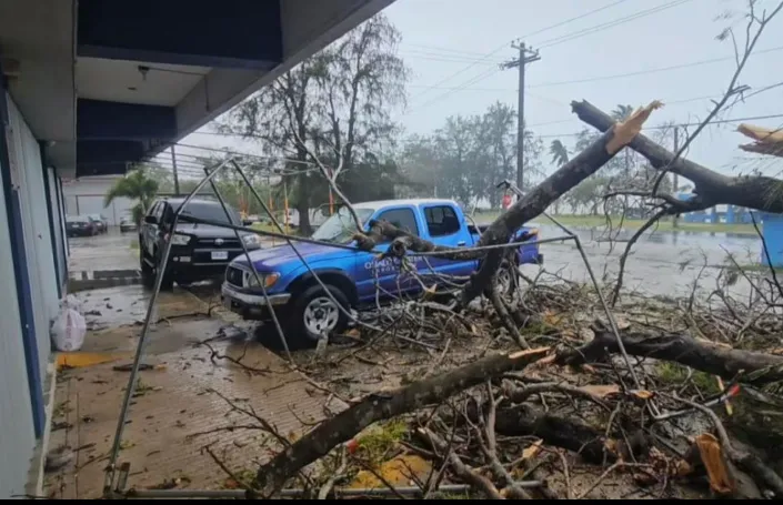 Thiệt hại do gió mạnh và mưa lớn từ siêu bão Sinlaku ở Saipan (Ảnh: RNZ)