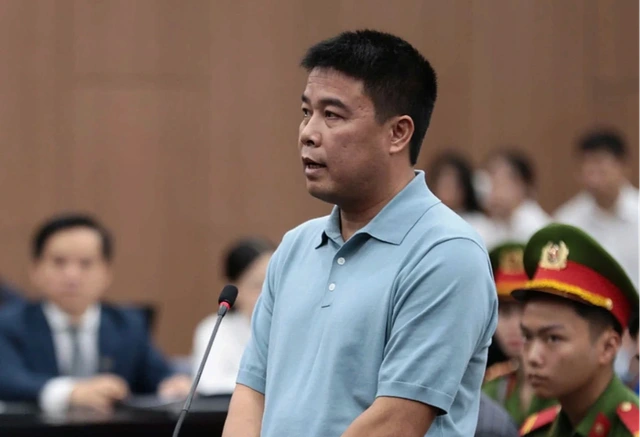 Cựu Chủ tịch Tập đoàn Phúc Sơn Nguyễn Văn Hậu tại phiên tòa xét xử vụ án liên quan đến loạt cựu quan chức tỉnh Vĩnh Phúc (cũ) - ẢNH: PHÚC BÌNH