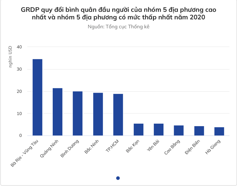 Cụ thể, chỉ số thu nhập GNI (tính theo chỉ số thu nhập quốc dân) bình quân của người dân tính theo sức mua tương đương của 5 địa phương này trong năm 2020 được ghi nhận như sau: Bà Rịa - Vũng Tàu 34.580 USD, Bình Dương 20.010 USD, Quảng Ninh 21.500 USD, Bắc Ninh 19.460 USD, TP.HCM 18.920 USD.