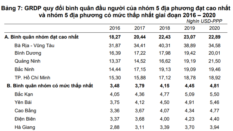 Dù vậy, Tổng cục Thống kê cho rằng do GRDP quy đổi bình quân đầu người của các địa phương được tính trên cơ sở chuyển đổi GRDP với cùng hệ số, không loại trừ được sự khác biệt về thu nhập ròng của lao động thường trú và thu nhập sở hữu từ bên ngoài giữa các địa phương.