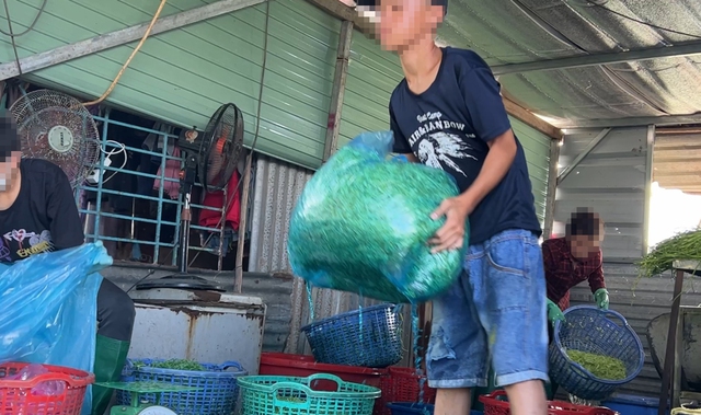Nam công nhân đóng gói rau muống bào, dung dịch từ gói rau muống vẫn chảy dài - TRẦN DUY KHÁNH - LÊ BÌNH