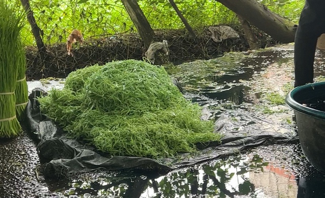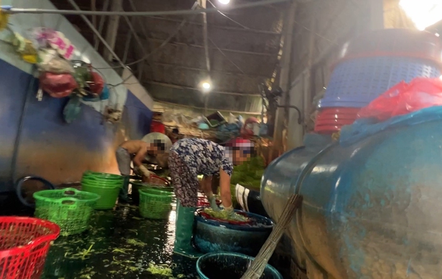 Tối 15.6, ông Đ. đi giao hơn 500 kg rau muống bào cho các thương lái và chừa lại 3 kg vứt ở trước nền nhà. Ngày 16.6, chúng tôi chứng kiến cảnh T. cùng vợ chồng ông Đ. "phù phép" 3 kg rau cũ nói trên thành rau tươi.