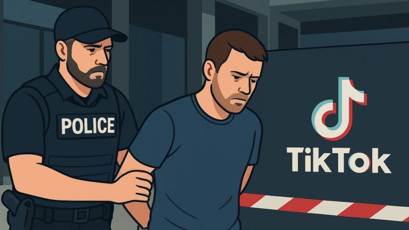 Nghi phạm đã bị bắt vì loạt đe dọa trực tuyến khiến TikTok phải sơ tán trụ sở. Đồ họa: Hạo Thiên