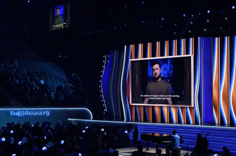 Ngày 3/4, trong lễ trao giải Grammy, tổng thống Ukraine Volodymyr Zelenskyy đã xuất hiện trong một đoạn video được ghi sẵn để kêu gọi sự ủng hộ cho Ukraine.