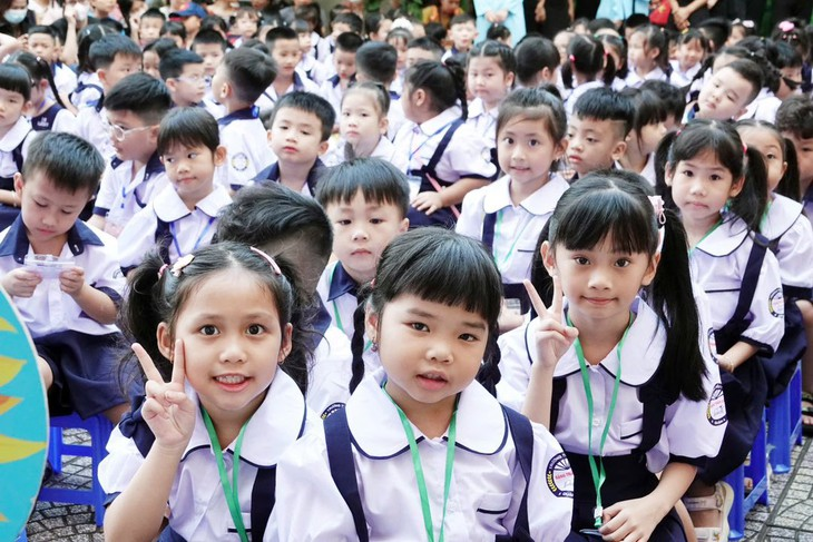 Học sinh lớp 1 Trường tiểu học Đặng Trần Côn, phường Vĩnh Hội, TP.HCM. Năm nay, TP.HCM tuyển sinh lớp 1 với hai đối tượng ưu tiên - Ảnh: T.HÀ
