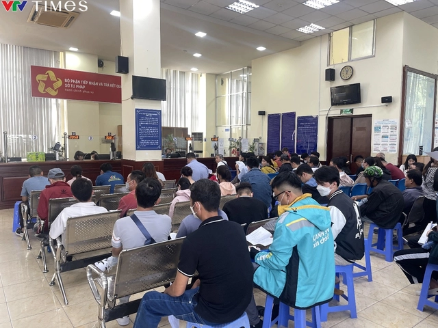 Đến hơn 14 giờ cùng ngày, bên ngoài vẫn còn đông người xếp thành 2 hàng dài đứng đợi vào văn phòng làm thủ tục. Bên trong khu vực tiếp nhận hồ sơ, nhân viên các ban, ngành tại Sở Tư pháp làm việc tối đa khả năng phục vụ người dân.