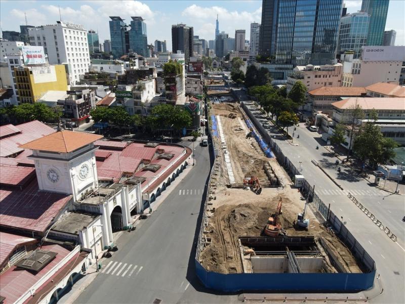 Rào chắn tại một tuyến đường khu trung tâm TPHCM phục vụ thi công dự án metro số 1. Ảnh: Anh Tú