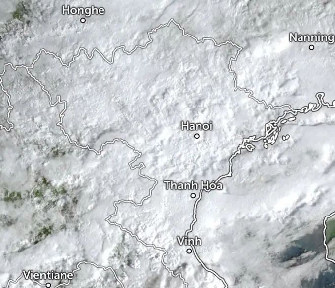 Ảnh vệ tinh lúc 7 giờ 30 phút sáng nay 1-11: không khí lạnh đẩy mây bao phủ hầu khắp miền Bắc và Bắc Trung bộ