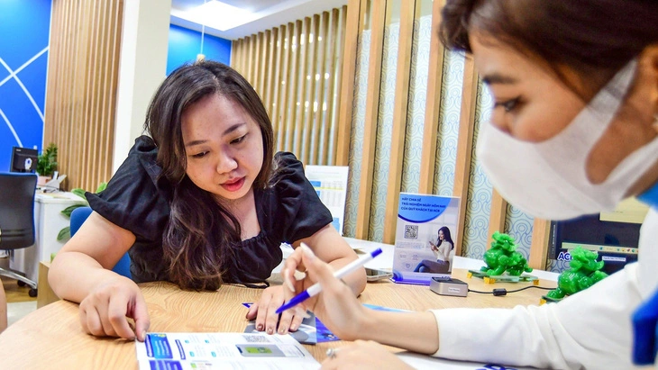 Khách hàng được tư vấn thực hiện giao dịch qua app - Ảnh: QUANG ĐỊNH