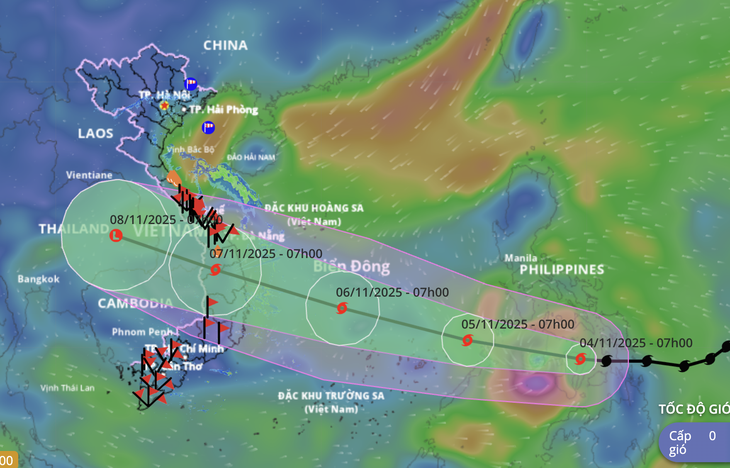 Dự báo sáng 5-11, bão Kalmaegi sẽ di chuyển vào Biển Đông, trở thành cơn bão số 13 hoạt động trên Biển Đông trong năm 2025.