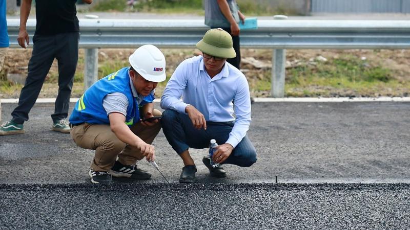 Tại hiện trường vào 8 giờ sáng cùng ngày, công tác thi công được triển khai đồng bộ. Không chỉ là một hạng mục xây lắp, việc áp dụng HHNRTN tại đây còn mang ý nghĩa kiểm chứng thực tế cho một giải pháp mặt đường mới trong điều kiện thi công quy mô lớn.