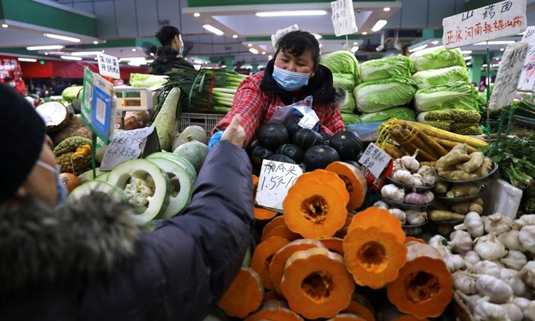 Quầy bán rau củ bên trong một khu chợ ở thủ đô Bắc Kinh, Trung Quốc, hồi tháng một. Ảnh: Reuters.